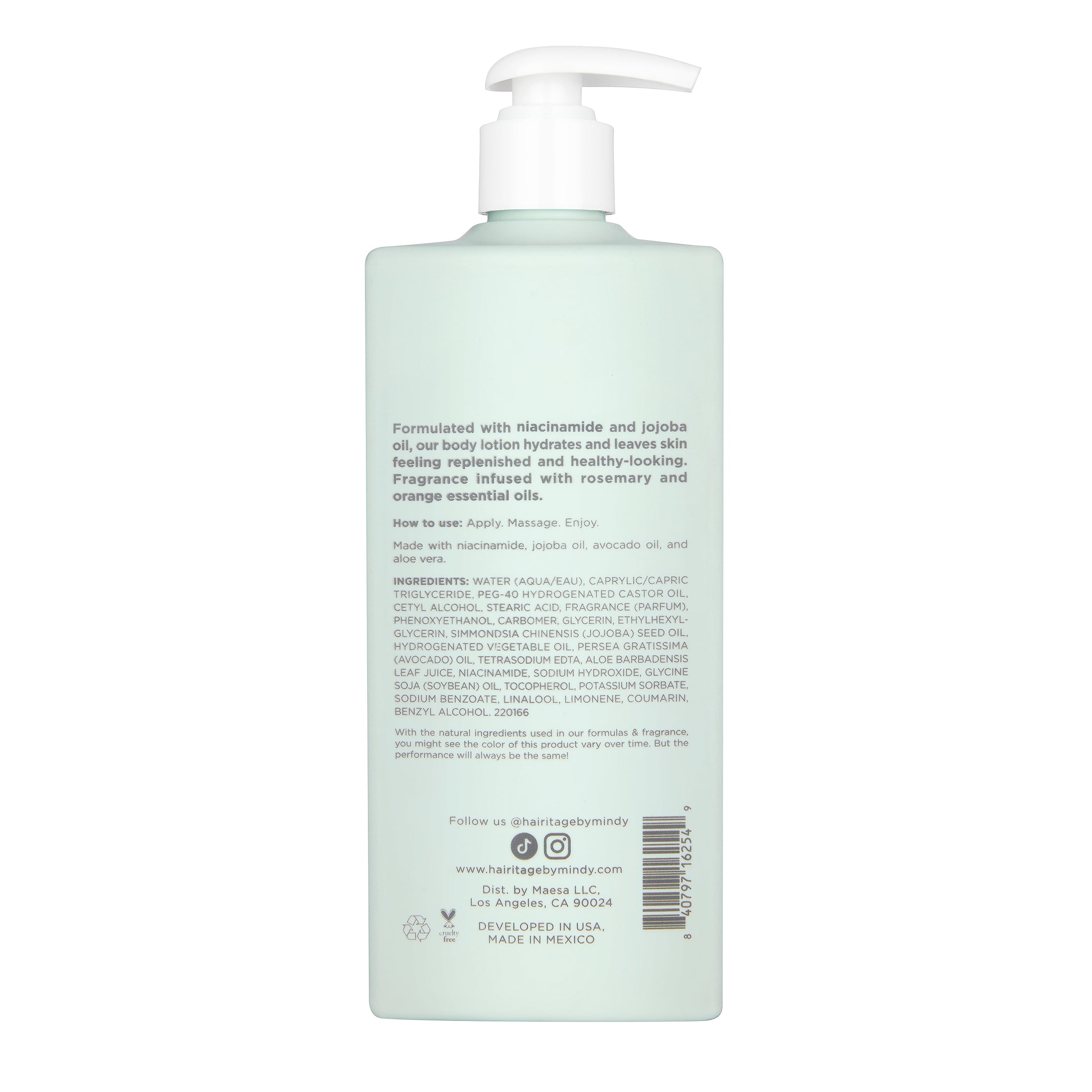 Formulated with Niacinamide and Jojoba Oil, Hairitage body lotion hydrates and leaves skin feeling replenished and healthy-looking. Fragrance infused with Rosemary and Orange essential oils. Family has always been a top priority, and we know it’s yours too!